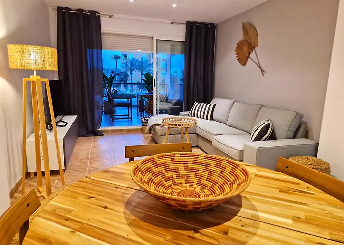 Для вашої зручності в апартаментах є обладнана кухня з електрочайником, холодильником і духовкою. Автобусна зупинка Rotonda Consum / AquaVera знаходиться поблизу від цих пляжних апартаментів. Для підтримки спортивного режиму надається доступ до поля для гольфу. З тераси помешкання відкривається вид на море.